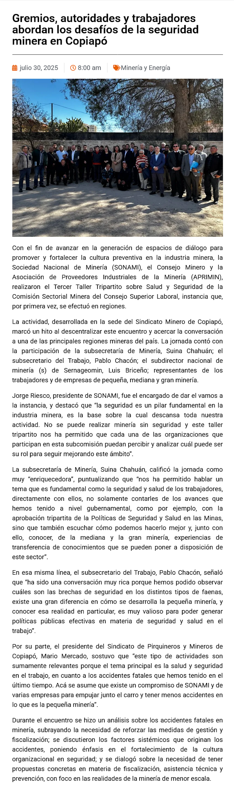 Gremios, autoridades y trabajadores abordan los desafíos de la seguridad minera en Copiapó - (portalVallenarDigital.cl)