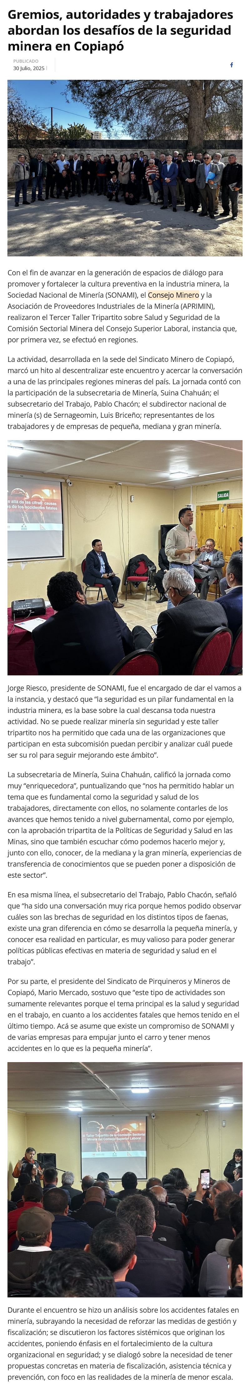 Gremios, autoridades y trabajadores abordan los desafíos de la seguridad minera en Copiapó - (portalVallenarDigital.cl)