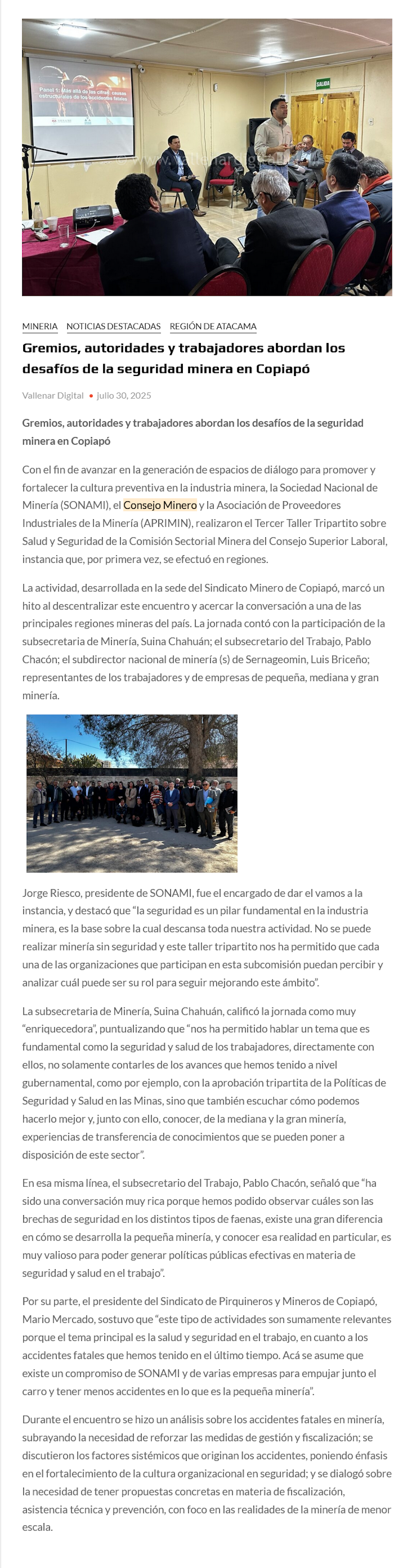 Gremios, autoridades y trabajadores abordan los desafíos de la seguridad minera en Copiapó - (Nostálgica Online)