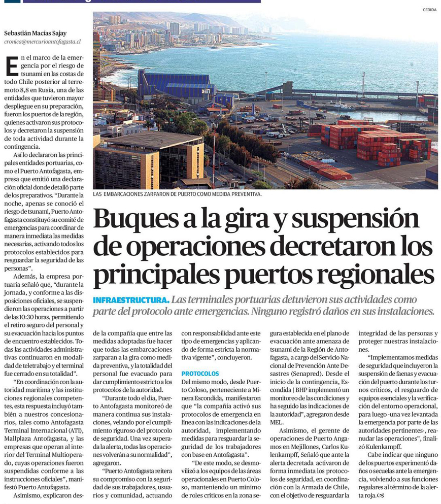Puertos y terminales de la Región de Antofagasta detienen operaciones por alerta de tsunami - (portalportuario)