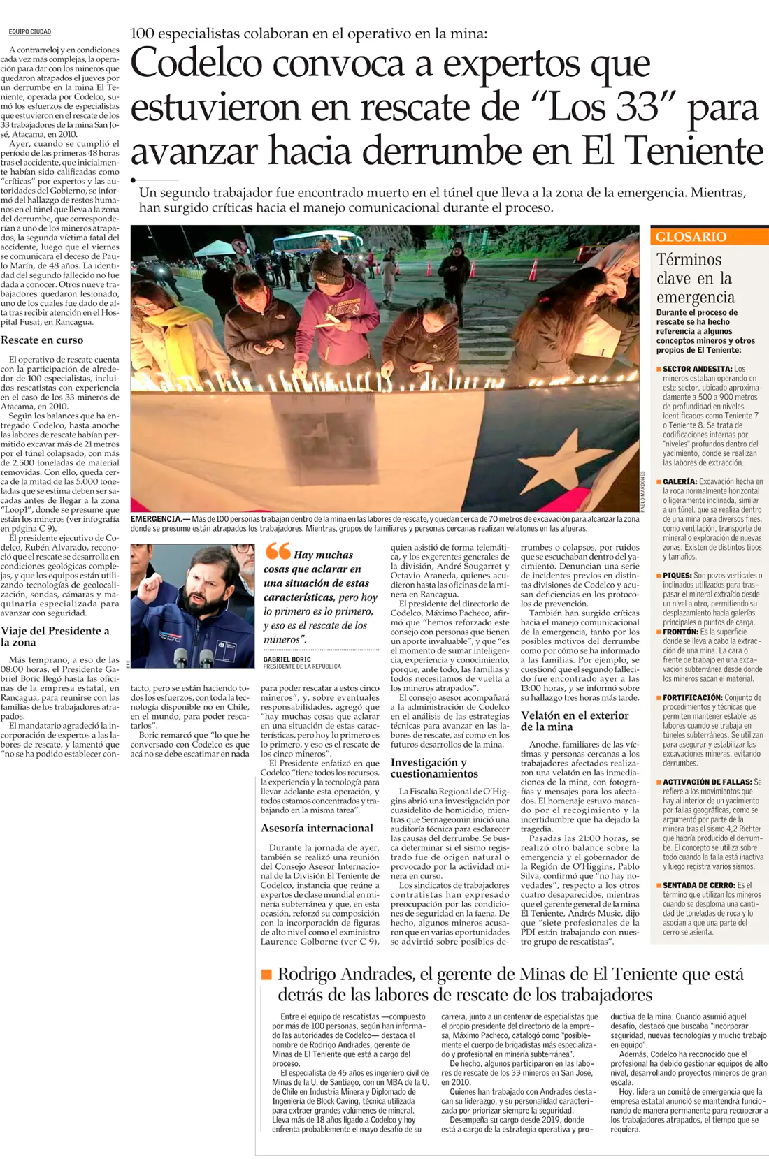 Fiscal anuncia diligencias “que no entorpezcan las labores de rescate” - (El Mercurio de Santiago)