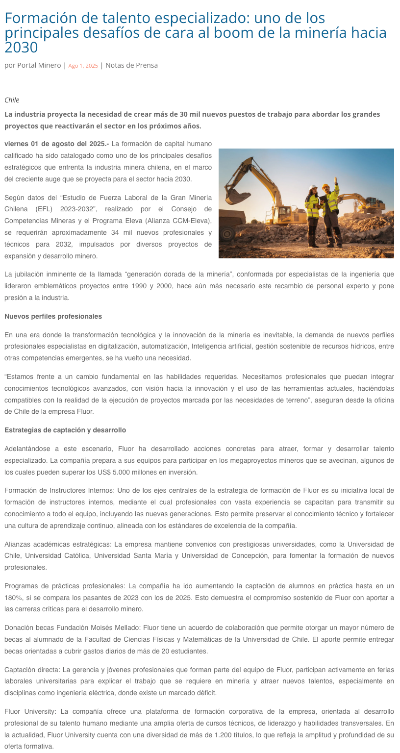 Formación de talento especializado: uno de los principales desafíos de cara al boom de la minería hacia 2030 - (portalinnova.cl)