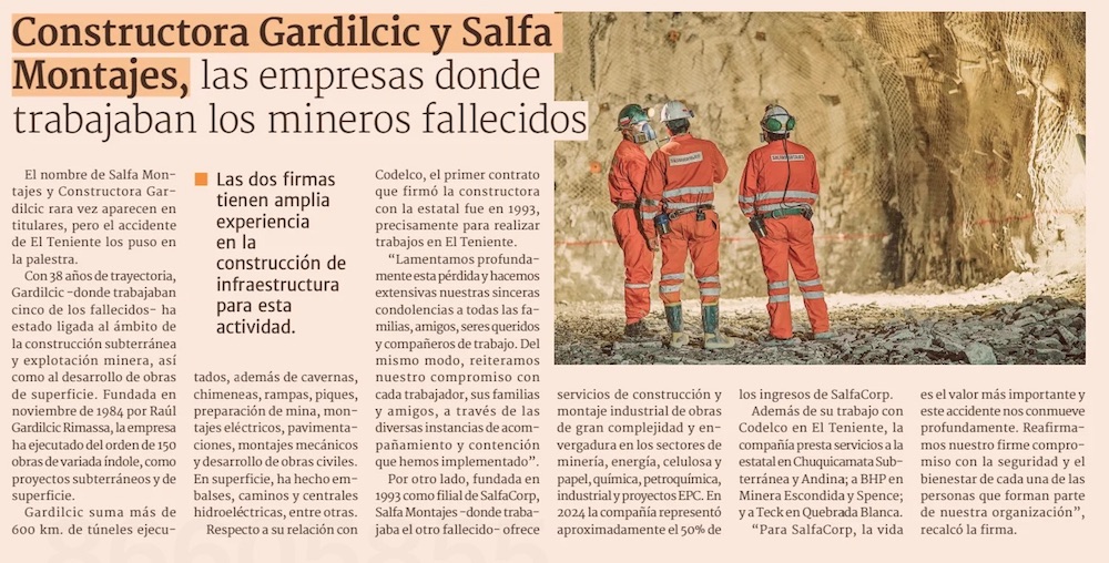 Gardilcic, la constructora íntimamente ligada a Codelco y que perdió a 5 trabajadores en El Teniente - (Pulso)