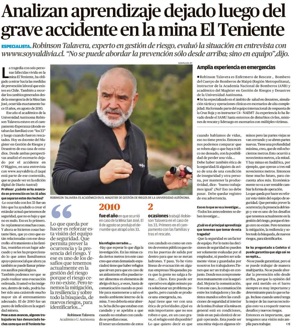 Los riesgos de la minería a gran profundidad: experto analiza derrumbe en El Teniente - (Diario Concepción)