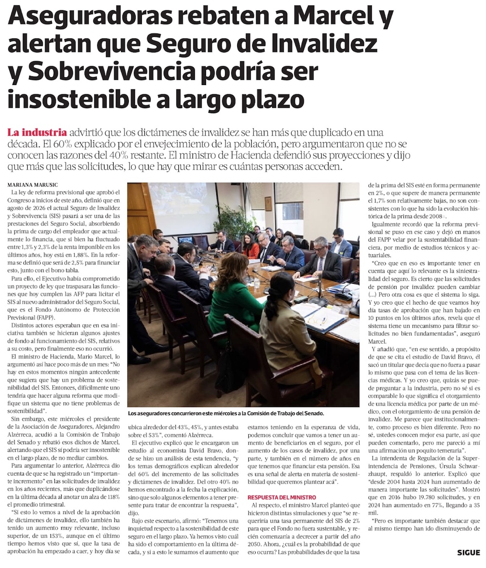 Aseguradoras advierten riesgo financiero para el nuevo SIS - (El Mercurio de Santiago)
