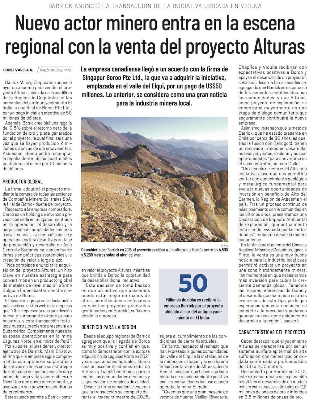 Barrick anuncia que llegó a acuerdo de venta del proyecto Alturas - (El Diario de Atacama)