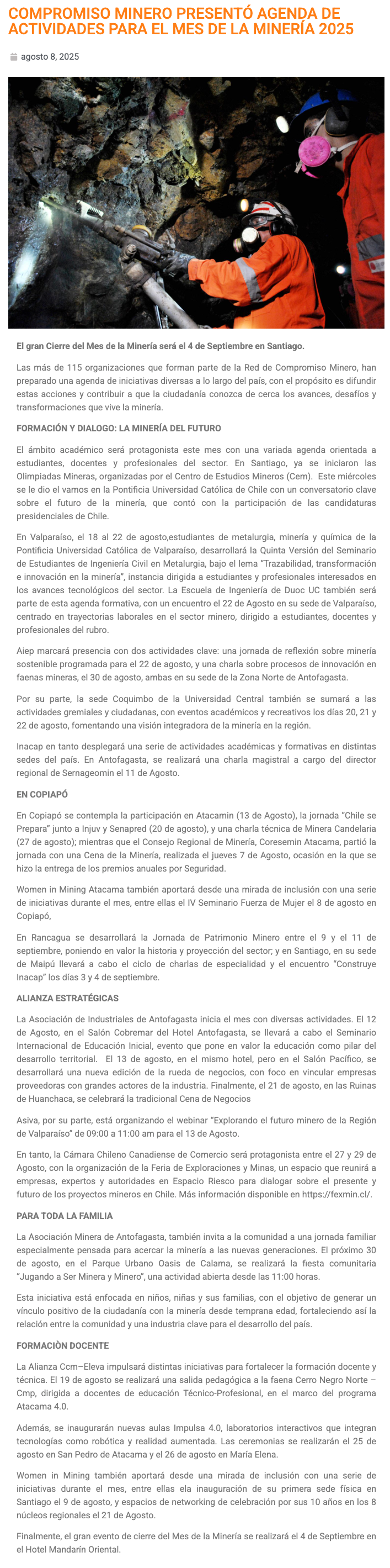 Compromiso Minero presenta la Agenda de Actividades para el Mes de la Minería 2025 - (guiaminera.cl)