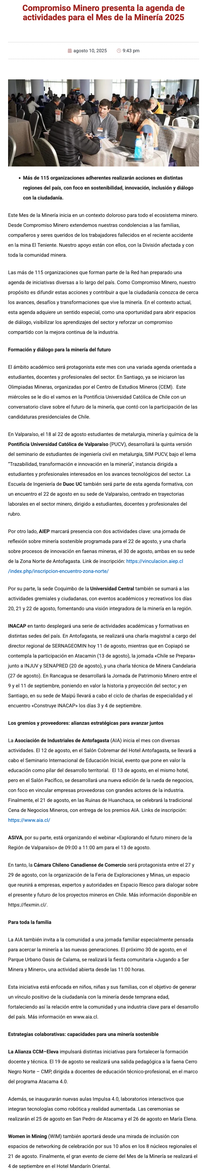 Compromiso Minero presenta la Agenda de Actividades para el Mes de la Minería 2025 - (guiaminera.cl)