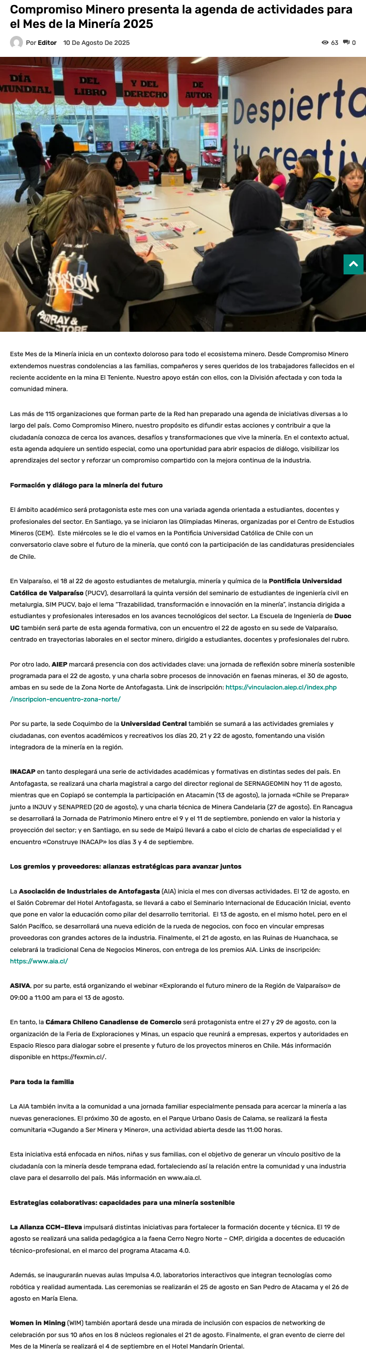 Compromiso Minero lanza agenda nacional para el Mes de la Minería 2025 - (mineriayfuturo.cl)