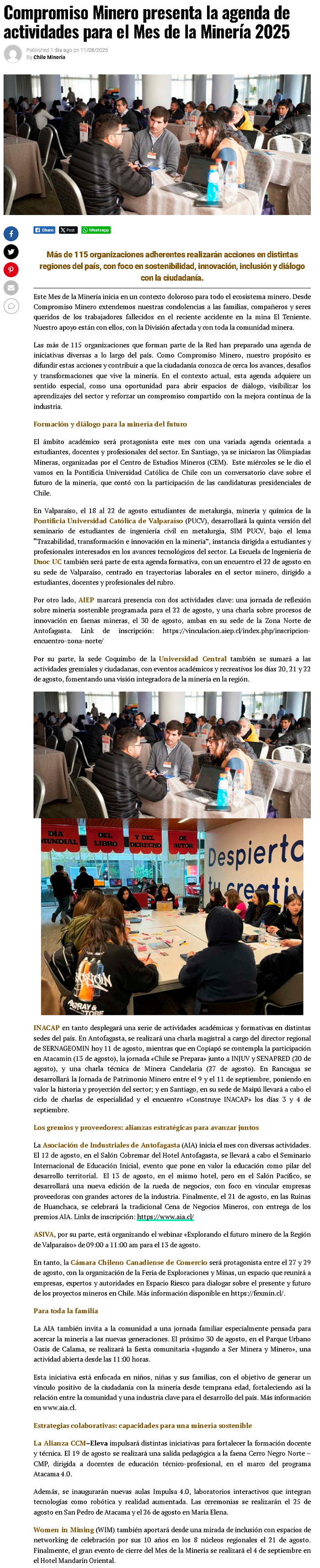 Compromiso Minero presenta la agenda de actividades para el Mes de la Minería 2025 - (portalinnova.cl)