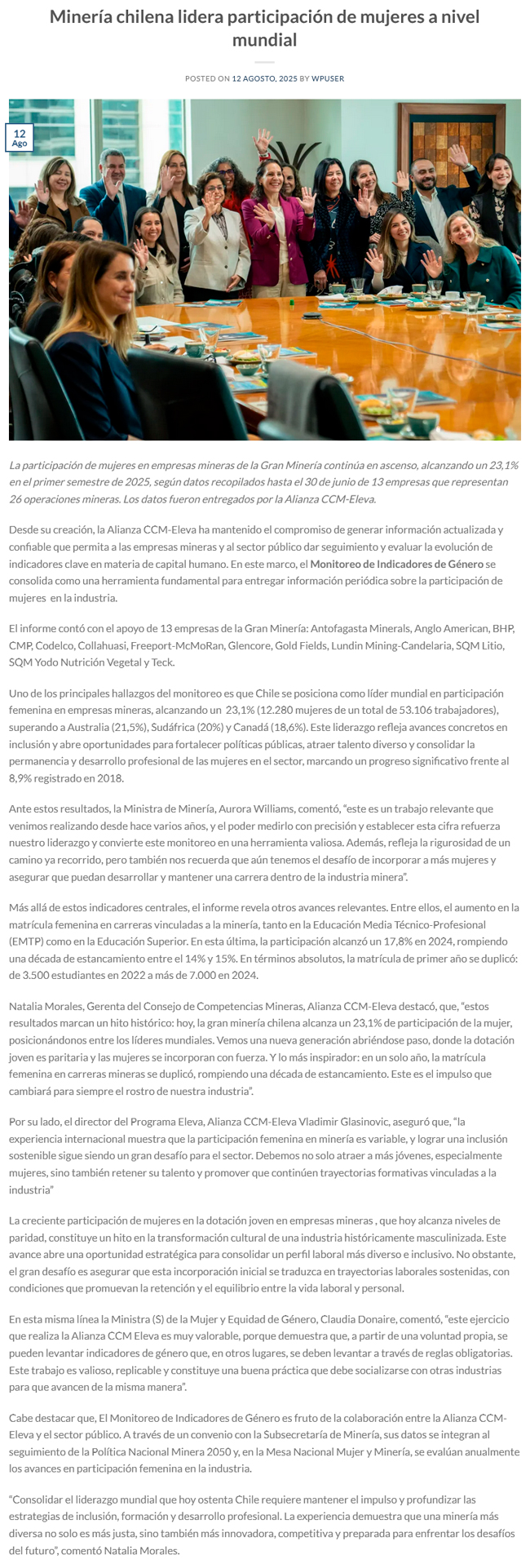Industria minera chilena lidera participación de mujeres a nivel mundial - (mch.cl)