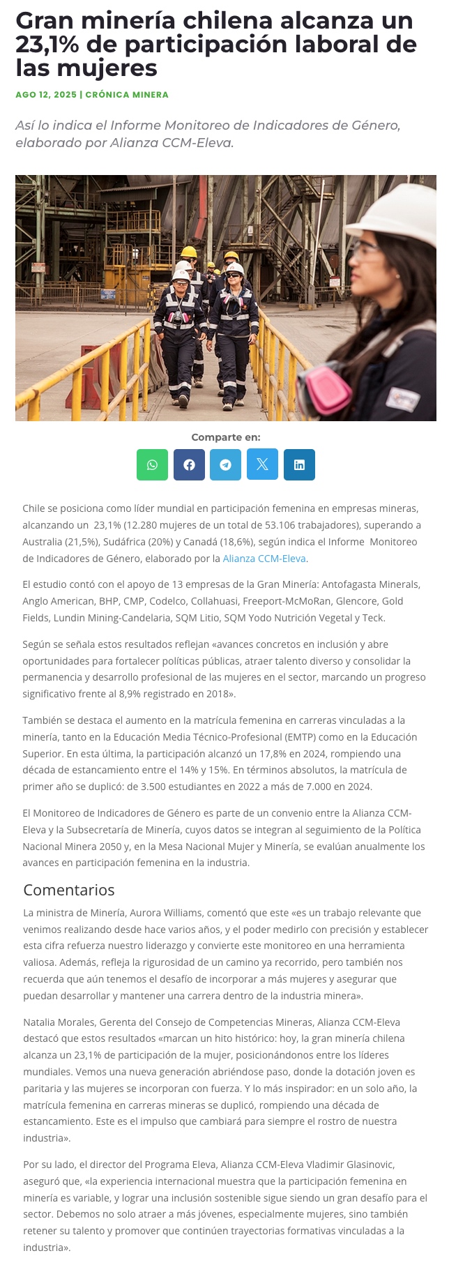 A 23,1% llegó participación de mujeres en la minería durante primer semestre de 2025 - (soyantofagasta)