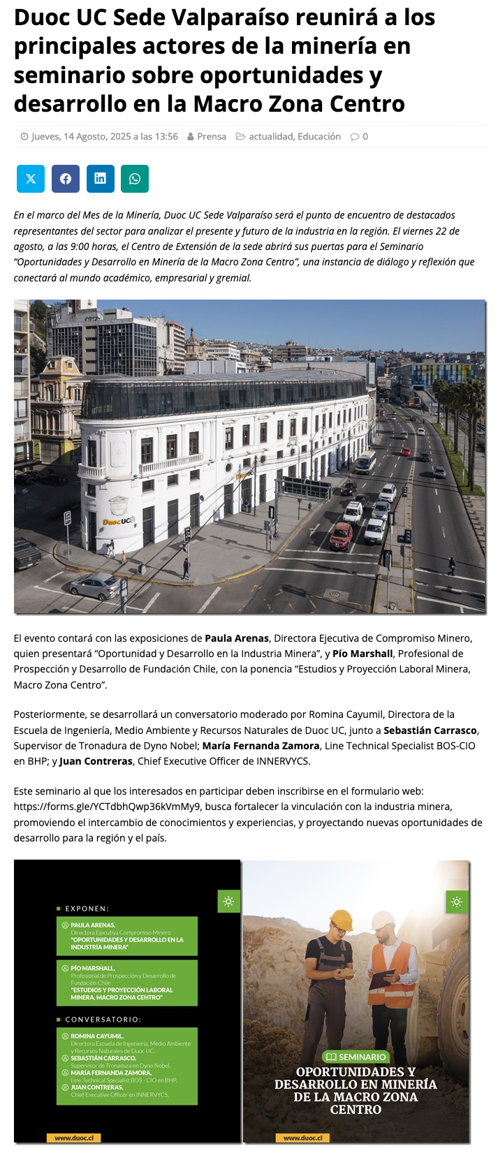 Duoc UC Sede Valparaíso reunirá a los principales actores de la minería en seminario sobre oportunidades y desarrollo en la Macro Zona Centro - (regionesnoticias.cl)