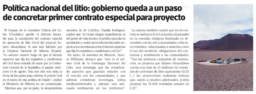 Primer CEOL de Estrategia Nacional del Litio obtiene todas sus aprobaciones y solo resta firmarlo - (Diario Financiero)