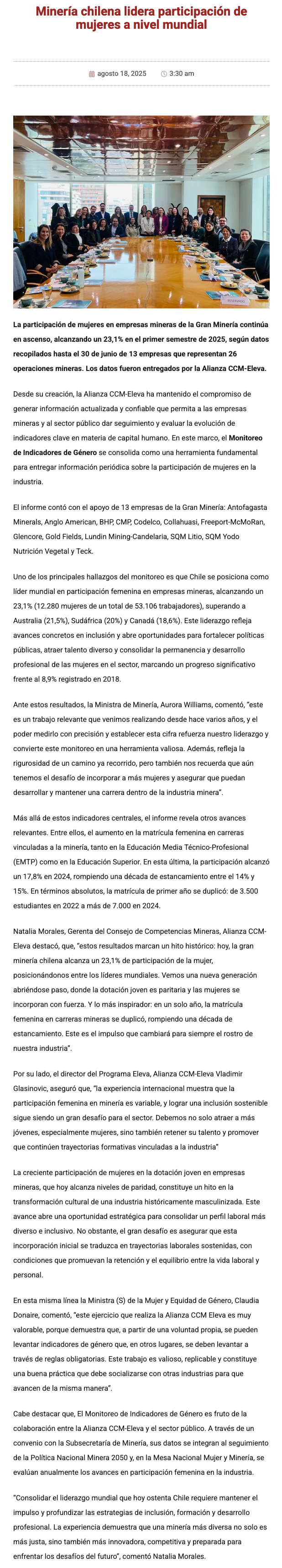 Minería de Chile lidera participación de mujeres a nivel mundial - (portalminero)