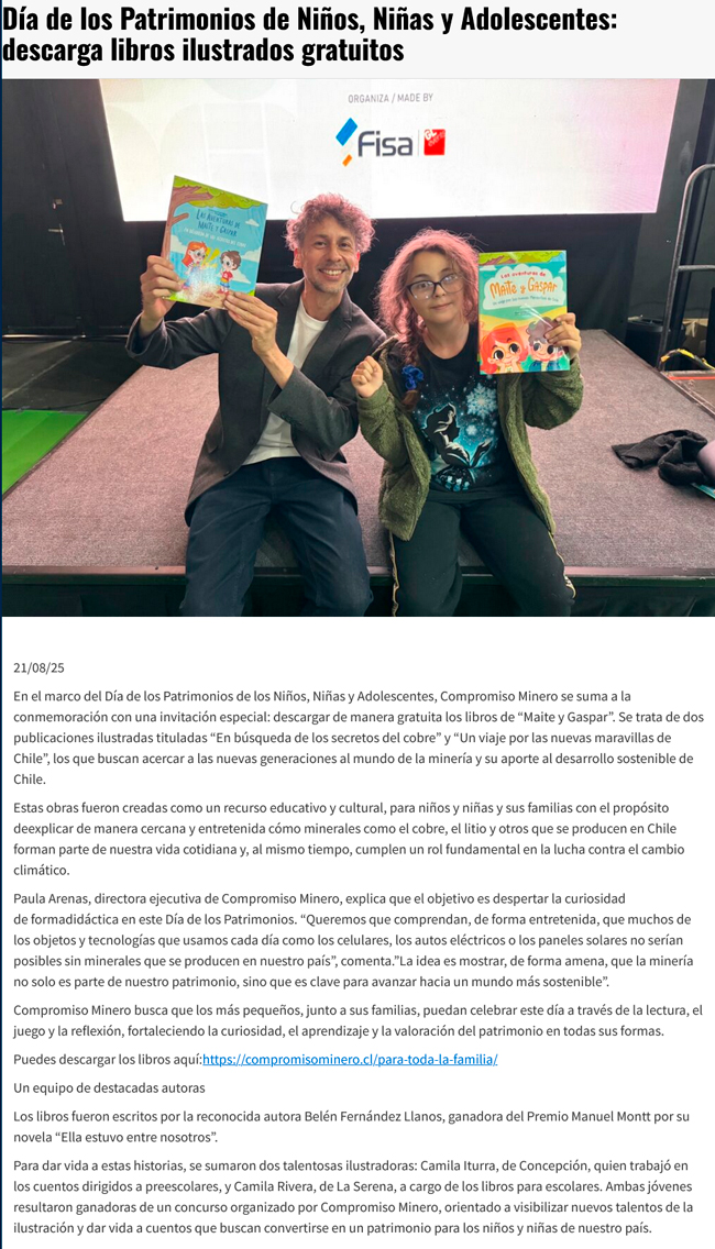 Compromiso Minero celebra el Día de los Patrimonios de los Niños, Niñas y Adolescentes con libros ilustrados gratuitos - (portaleduca.cl)