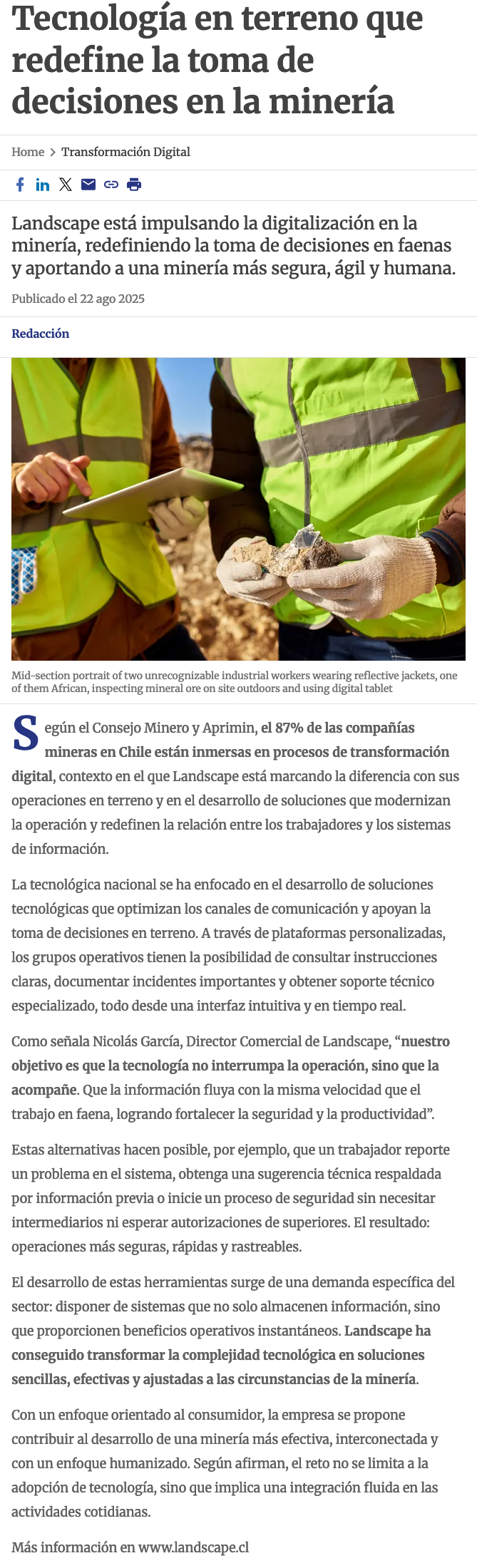 Tecnología en terreno: Landscape redefine la toma de decisiones en faenas mineras - (g5noticias.cl)