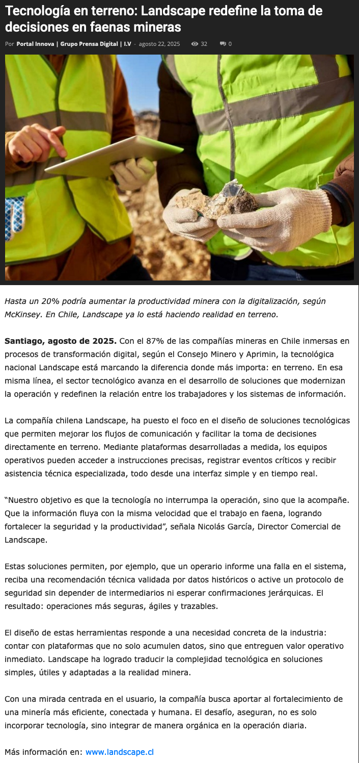 Tecnología en terreno: Landscape redefine la toma de decisiones en faenas mineras - (g5noticias.cl)