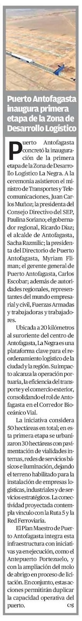Inauguran primera etapa de desarrollo logístico en La Negra - (El Mercurio de Antofagasta)