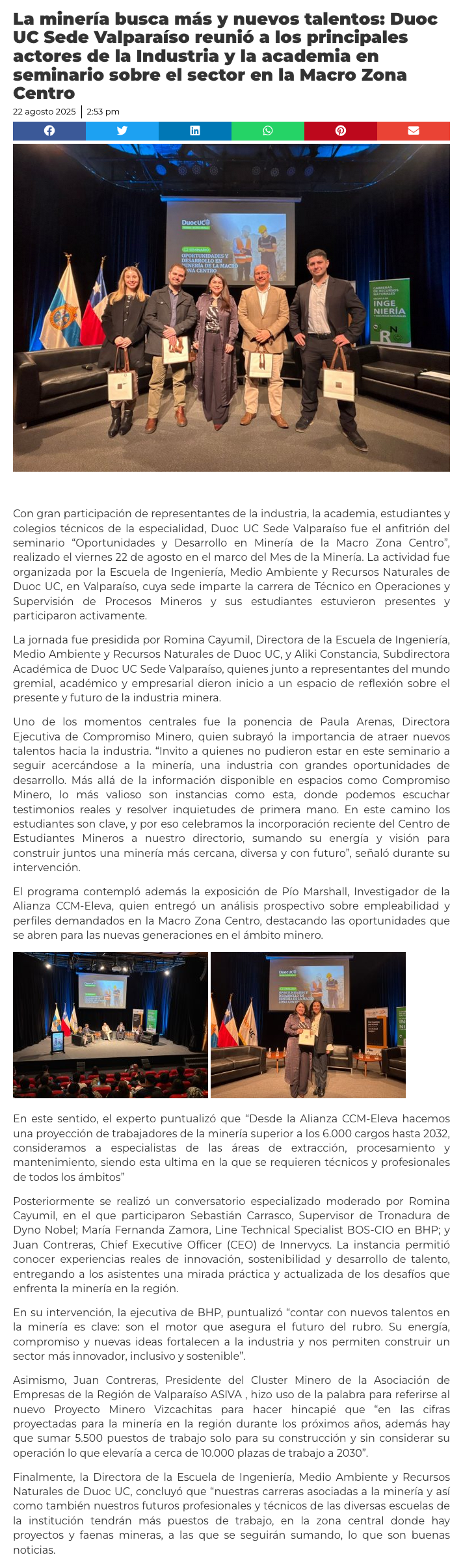 La minería busca nuevos talentos: Duoc UC Valparaíso reunió a industria y academia en seminario - (contraplano.cl)
