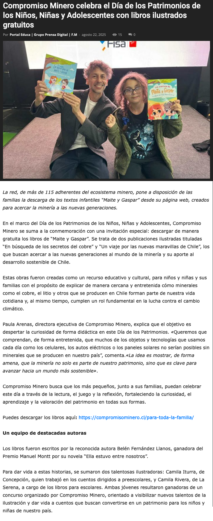 Compromiso Minero celebra el Día de los Patrimonios de los Niños, Niñas y Adolescentes con libros ilustrados gratuitos - (regionesnoticias.cl)