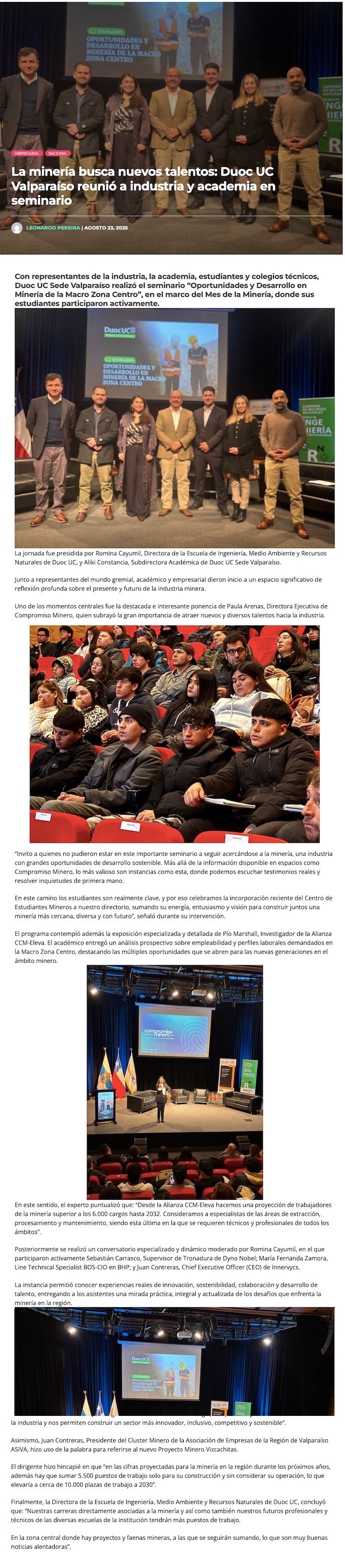 La minería busca más y nuevos talentos: Duoc UC Sede Valparaíso reunió a los principales actores de la Industria y la academia en seminario sobre el sector en la Macro Zona Centro - (mediabanco.com)