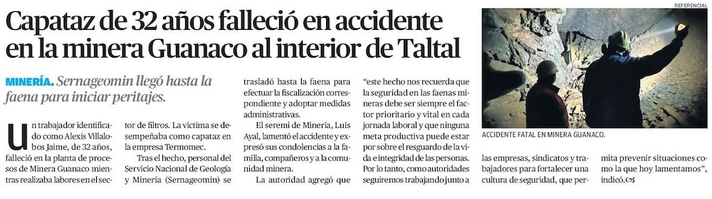 Trabajador de 32 años falleció tras sufrir accidente en faena minera de Taltal - (timeline)