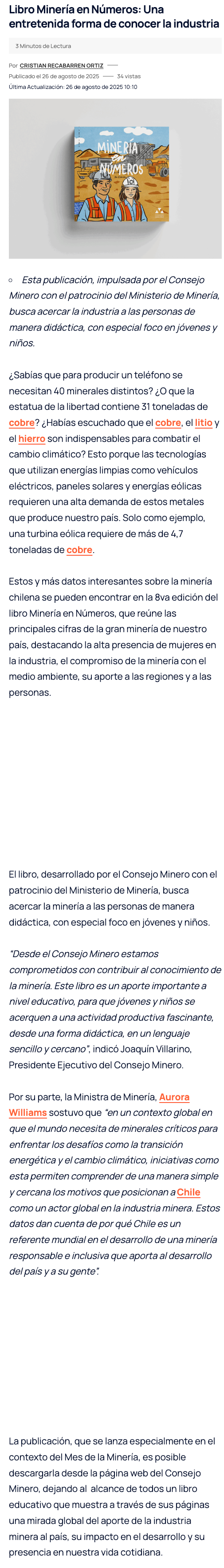 Libro Minería en Números: Una entretenida forma de conocer la industria - (lavozdelnorte)