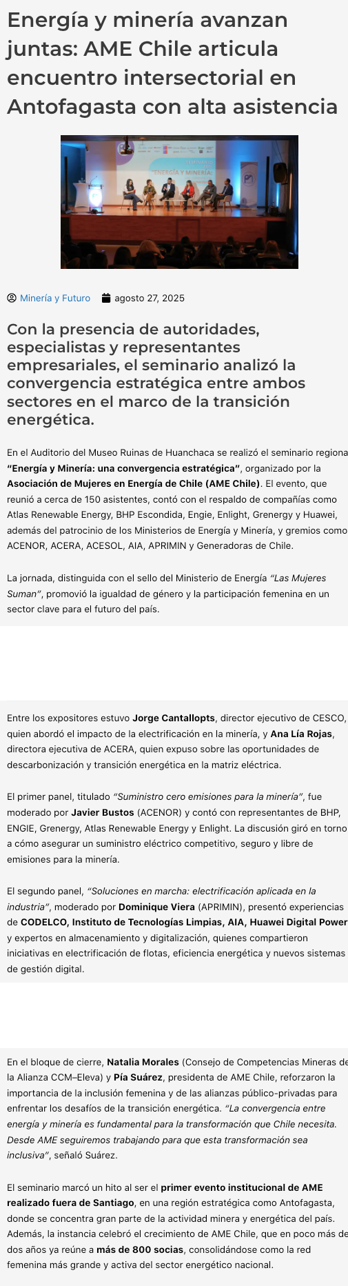 Energía y minería avanzan juntas: AME Chile articula encuentro intersectorial en Antofagasta con alta asistencia - (redimin)