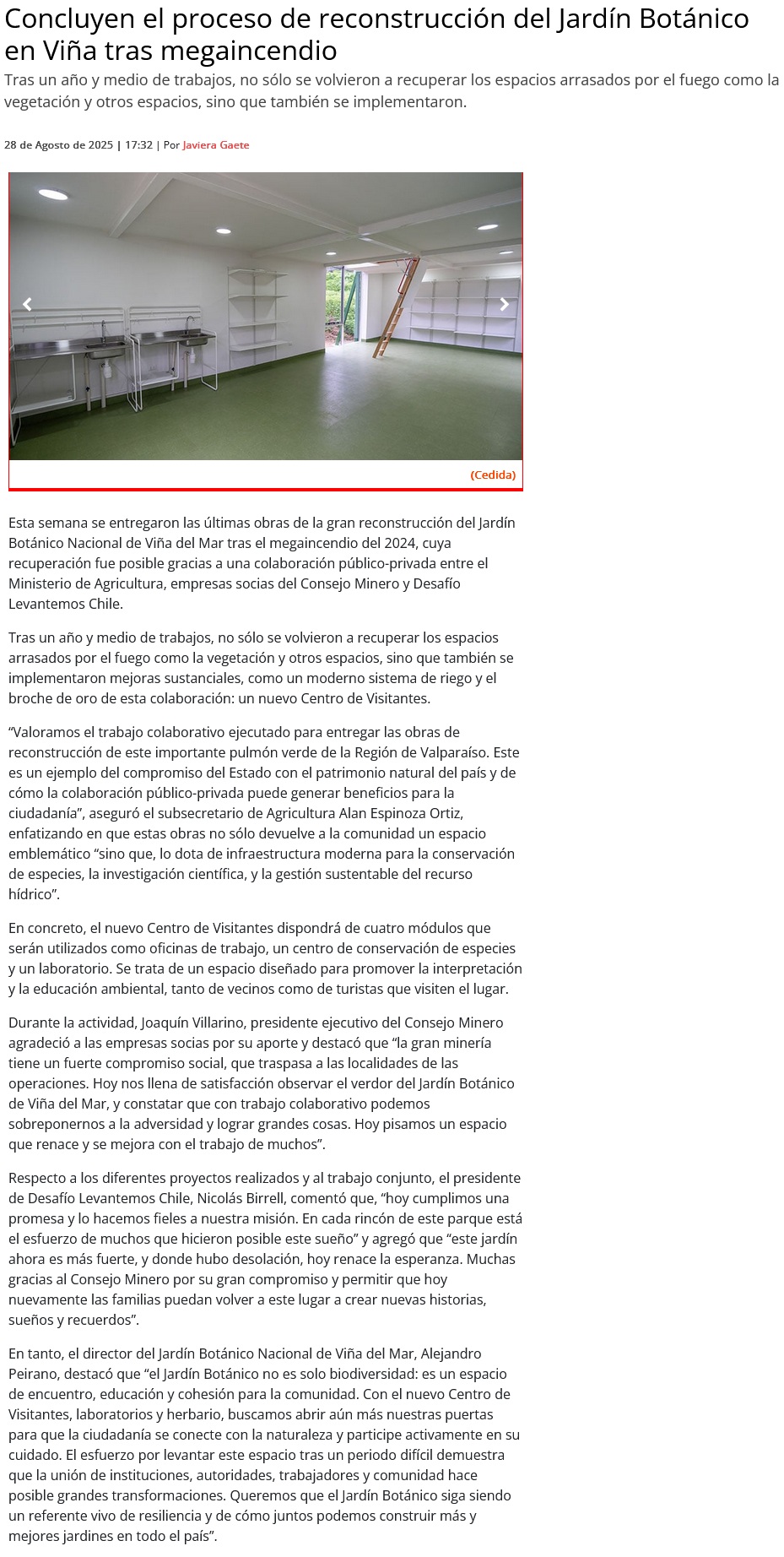 Ministerio de Agricultura, Consejo Minero y Desafío Levantemos Chile concluyeron reconstrucción del Jardín Botánico de Viña del Mar - (g5noticias.cl)