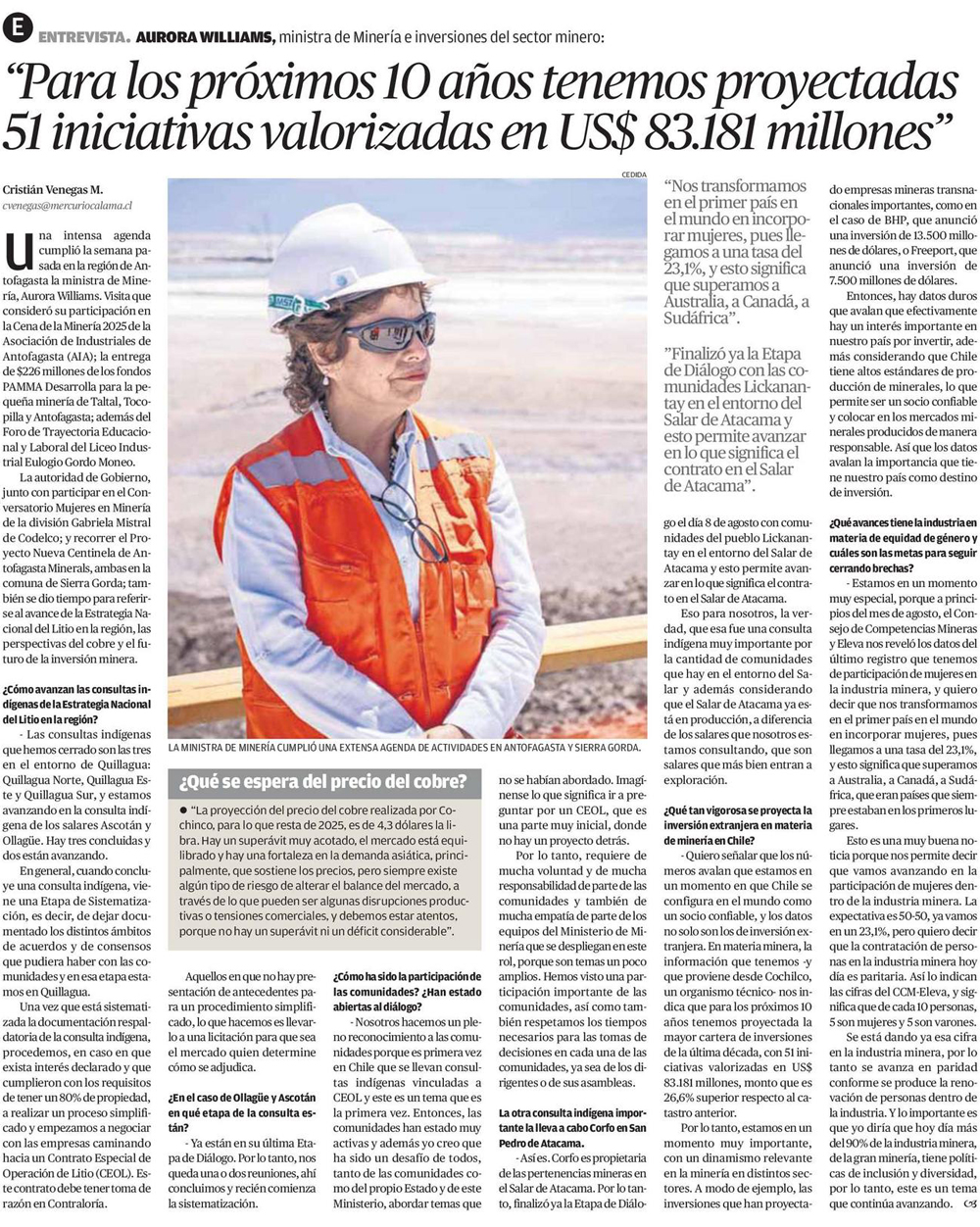 "Para los próximos 10 años tenemos proyectadas 51 iniciativas valorizadas en US$ 83.181 millones" - (El Mercurio de Antofagasta)
