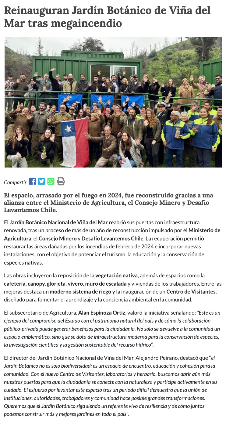 Ministerio de Agricultura, Consejo Minero y Desafío Levantemos Chile entregan renovado Jardín Botánico de Viña del Mar - (mineriayfuturo.cl)
