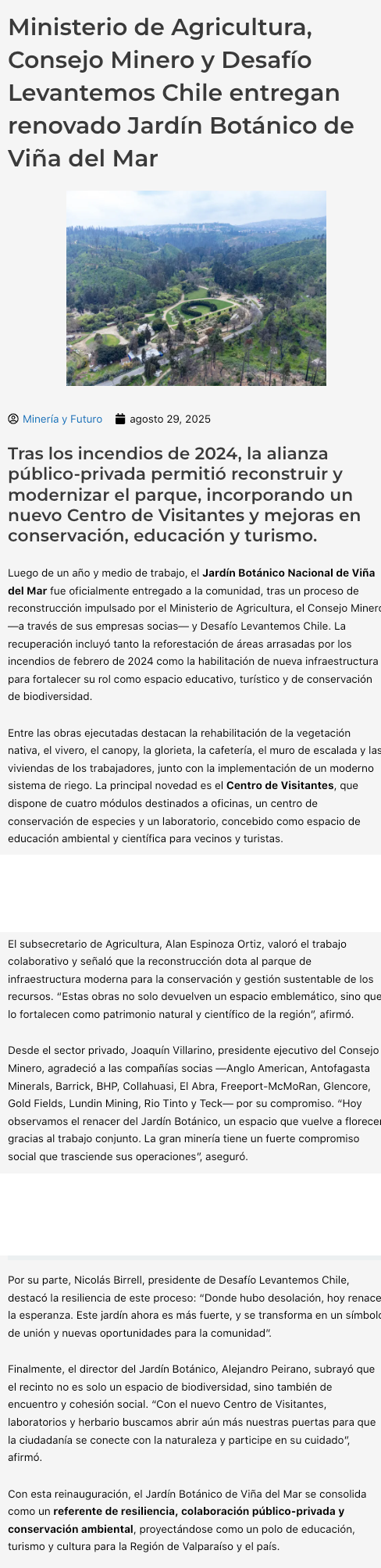 Jardín Botánico Nacional de Viña del Mar reabre con nueva infraestructura tras incendio de 2024 - (sabes.cl)