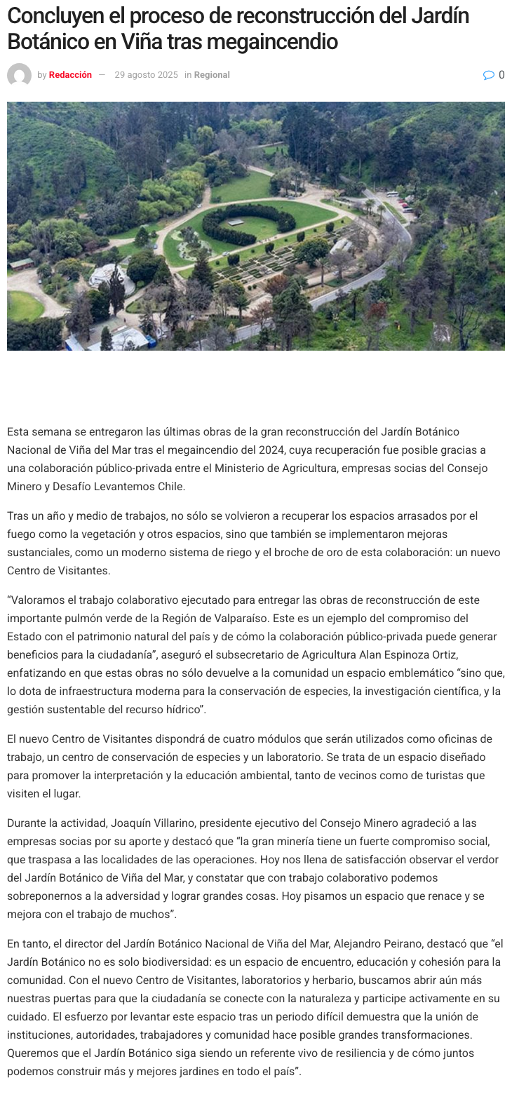 Ministerio de Agricultura, Consejo Minero y Desafío Levantemos Chile entregan renovado Jardín Botánico de Viña del Mar - (mineriayfuturo.cl)