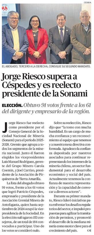 Riesco fue reelegido para liderar Sonami - (El Diario de Atacama)