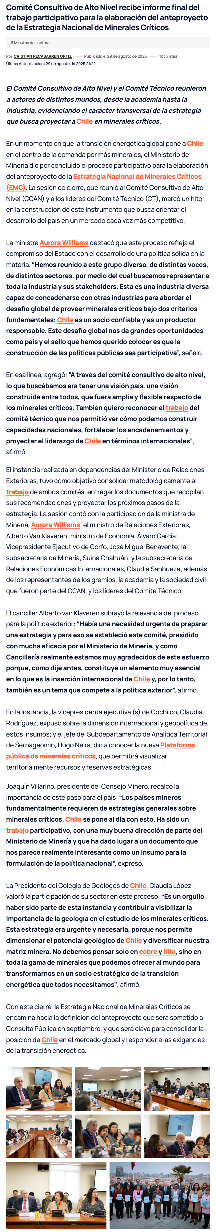 Comité Consultivo de Alto Nivel recibe informe final del trabajo participativo para la elaboración del anteproyecto de la Estrategia Nacional de Minerales Críticos - (g5noticias.cl)
