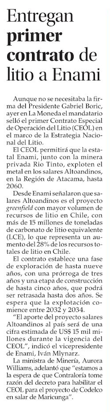 Firman el primer CEOL de la Estrategia Nacional del Litio - (El Diario de Atacama)