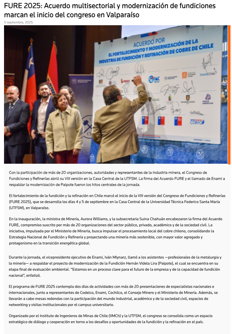 FURE 2025: Acuerdo multisectorial y modernización de fundiciones marcan el inicio del congreso en Valparaíso - (nuevaminería online)