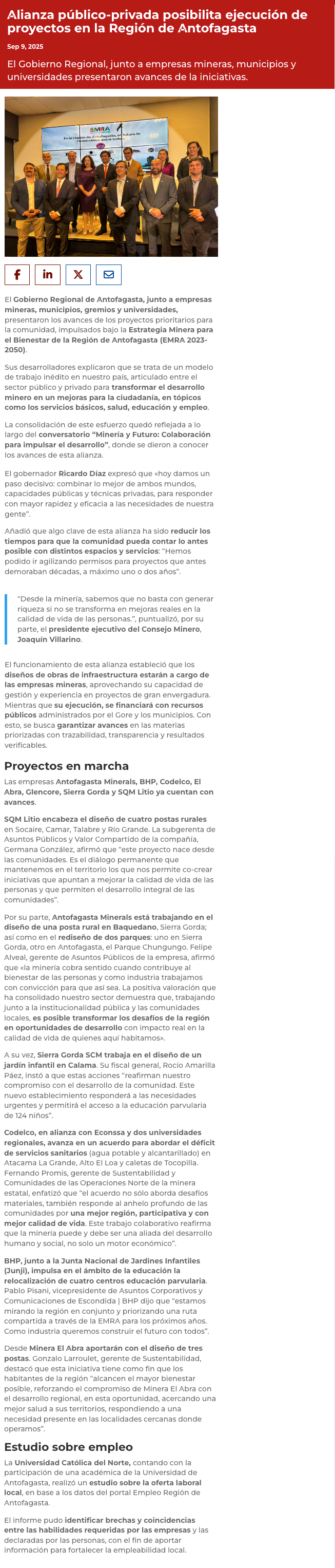 Región de Antofagasta consolidó inédito modelo de colaboración público-privado con la minería para transformar la calidad de vida en la región - (regionesnoticias.cl)