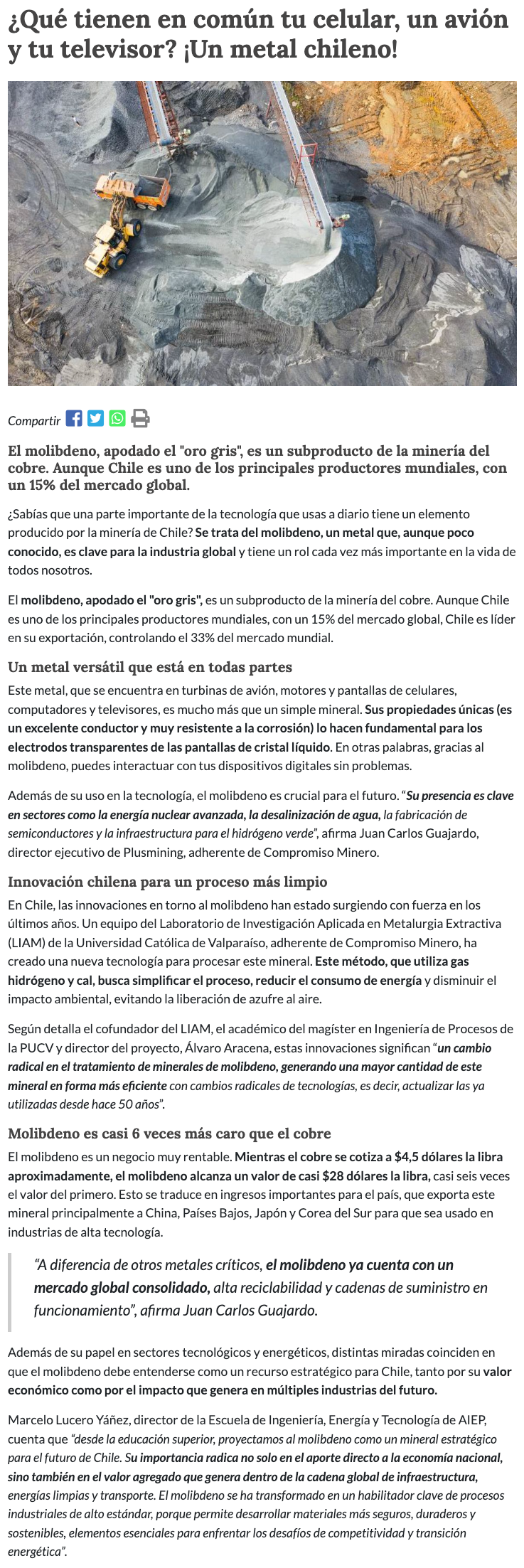 ¿Qué tienen en común tu celular, un avión y tu televisor? ¡Un metal chileno! - (minerialocal.cl)