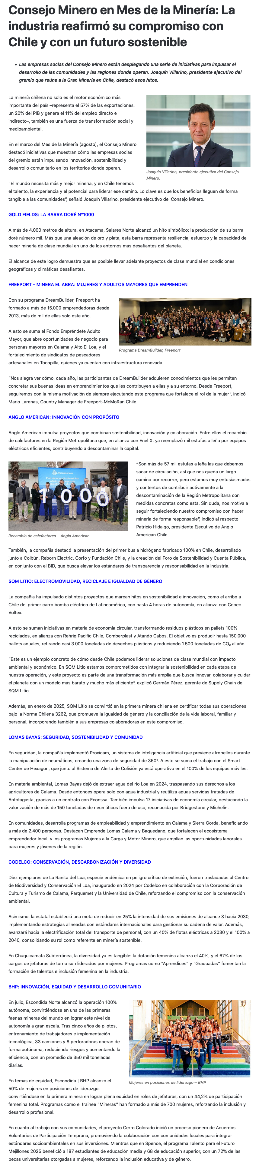 En el Mes de la Minería, la industria reafirma su compromiso con Chile y con un futuro sostenible - (lavozdelamineria.cl)