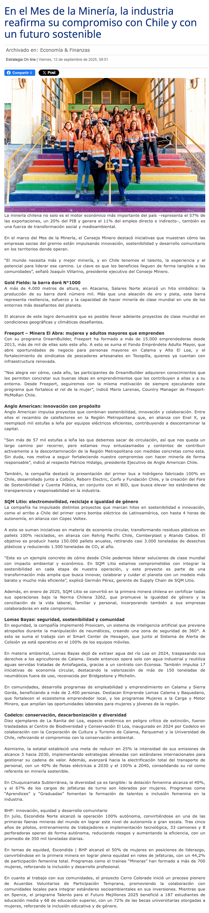 En el Mes de la Minería, la industria reafirma su compromiso con Chile y con un futuro sostenible - (Nostálgica Online)