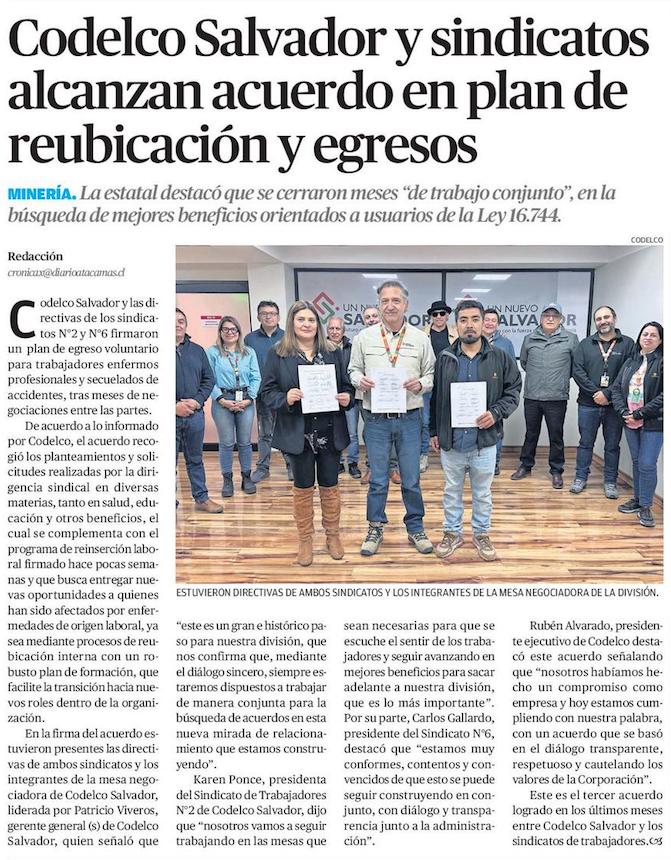 Codelco Salvador y sus sindicatos alcanzan acuerdo para plan de reubicación y egreso - (madero.cl)