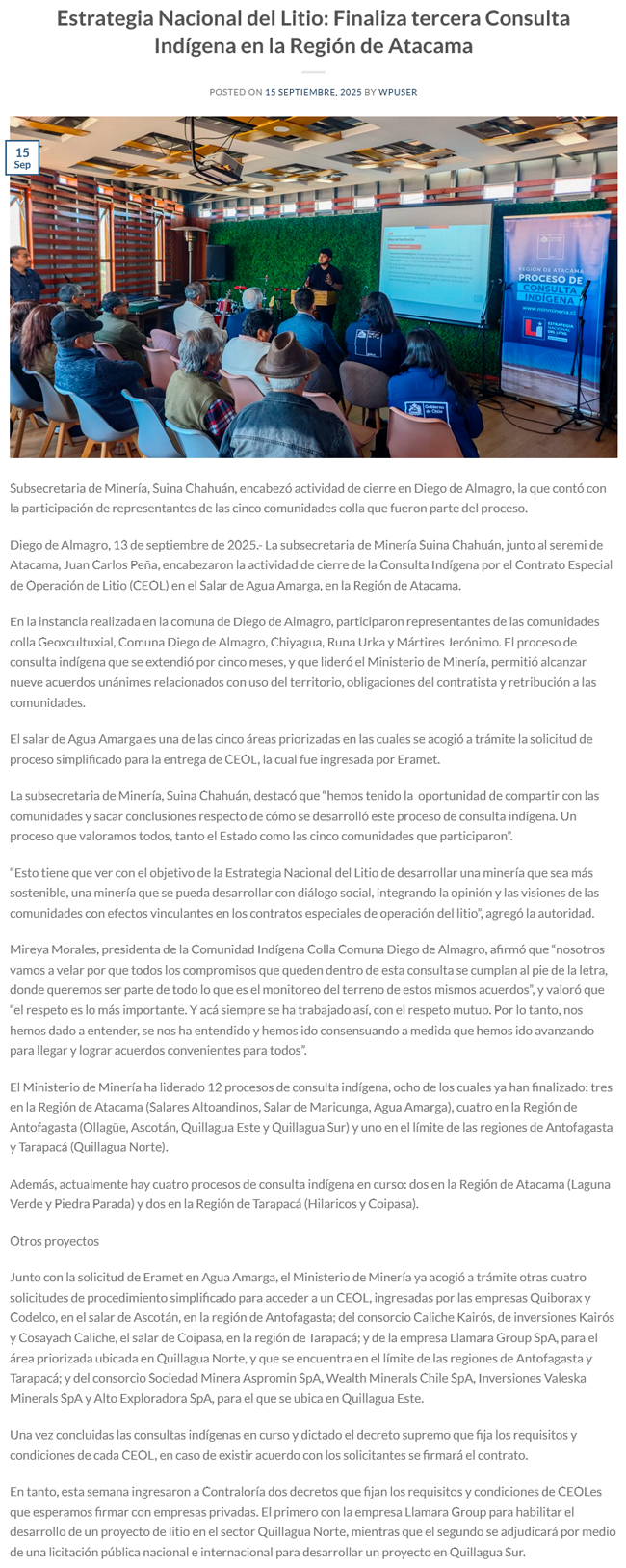 Estrategia Nacional del Litio: Finaliza tercera Consulta Indígena en la Región de Atacama - (El Chañarcillo)