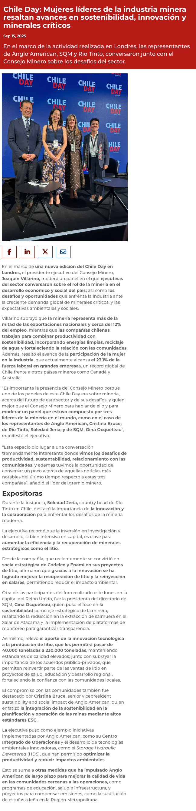 Mujeres líderes de la minería destacaron en Londres durante el “Chile Day” - (revistacrisol.cl)