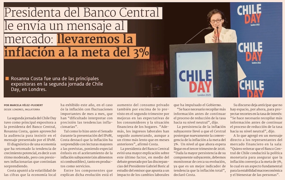 Costa vincula meta de 3% de IPC con bienestar social - (El Mercurio de Santiago)