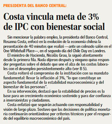 Presidenta del Banco Central le envía un mensaje al mercado: llevaremos la inflación a la meta del 3% - (Diario Financiero)