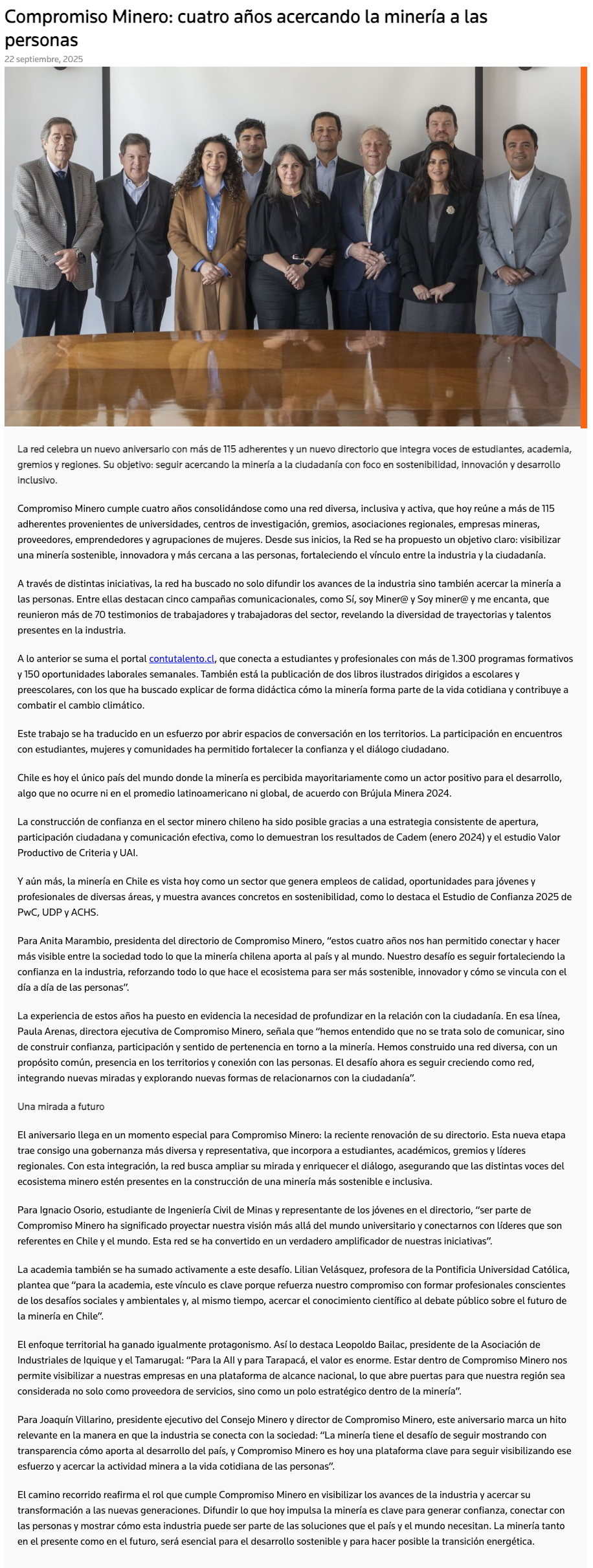Compromiso Minero cumple 4 años con nuevo directorio - (chilepaisminero.com)