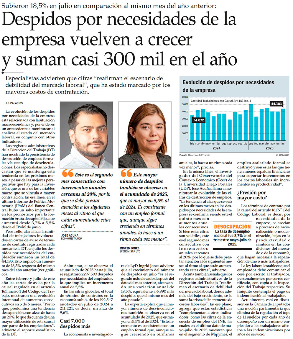 Despidos por necesidad de la empresa suben 18% en julio y surgen alertas de que 2025 supere al peor año de la pandemia - (Pulso)