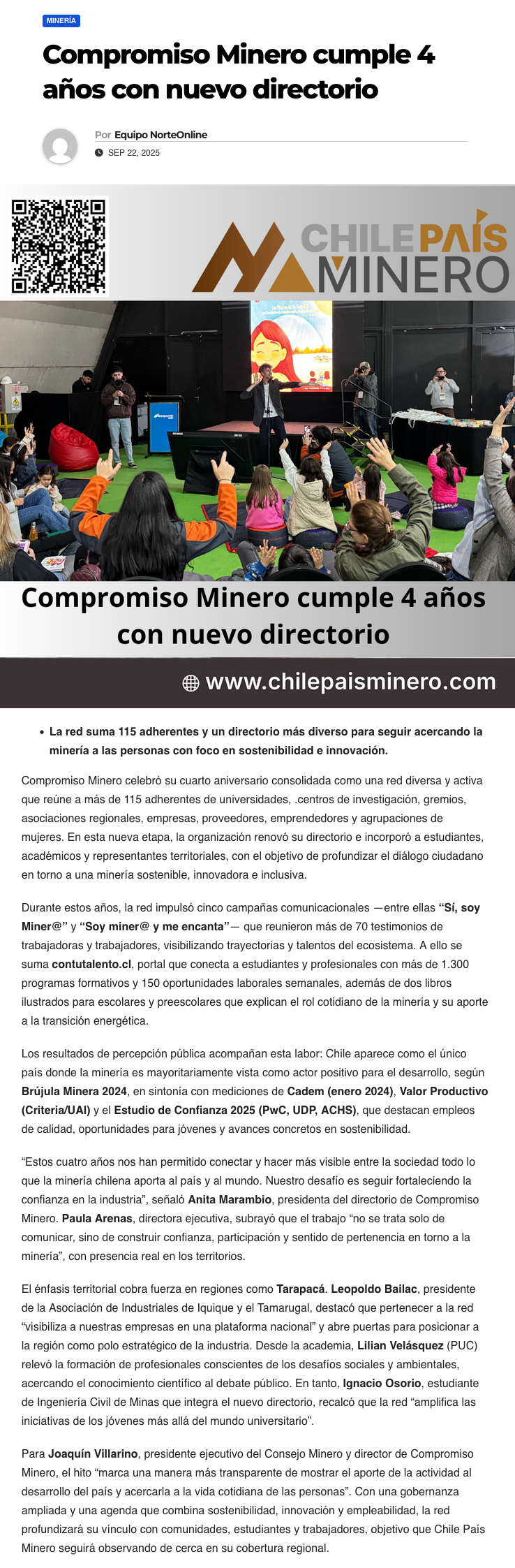 Compromiso Minero: cuatro años acercando la minería a las personas - (regionesnoticias.cl)